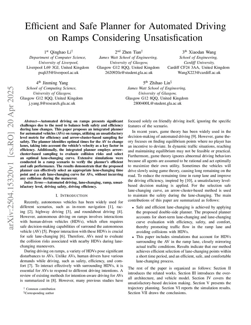 Efficient and Safe Planner for Automated Driving on Ramps Considering Unsatisfication