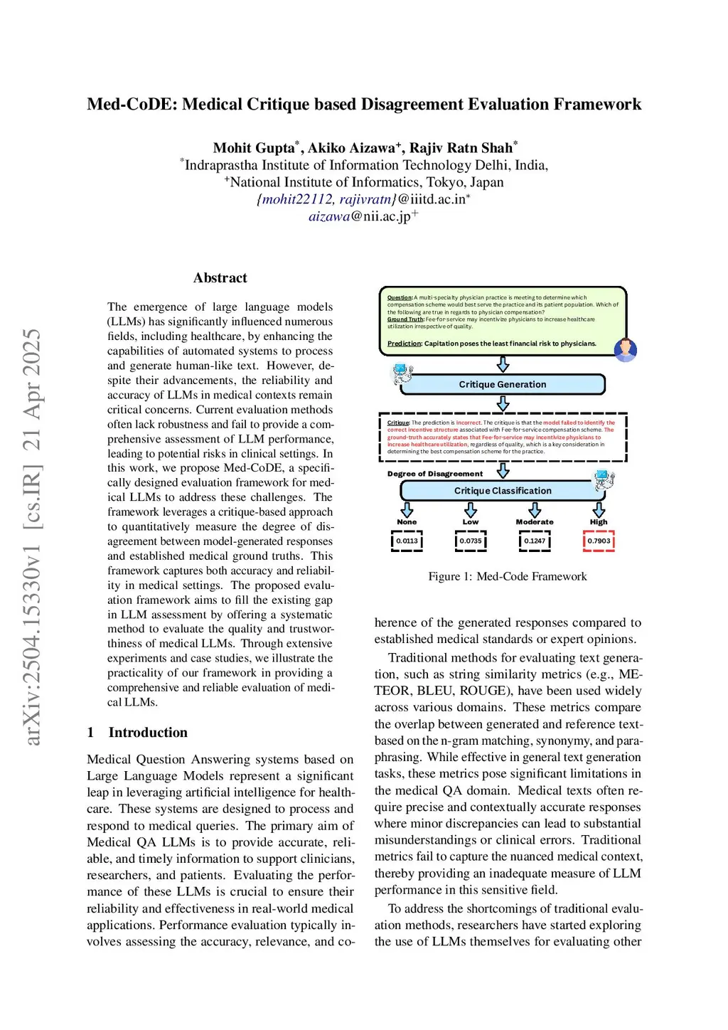 Med-CoDE: Medical Critique based Disagreement Evaluation Framework