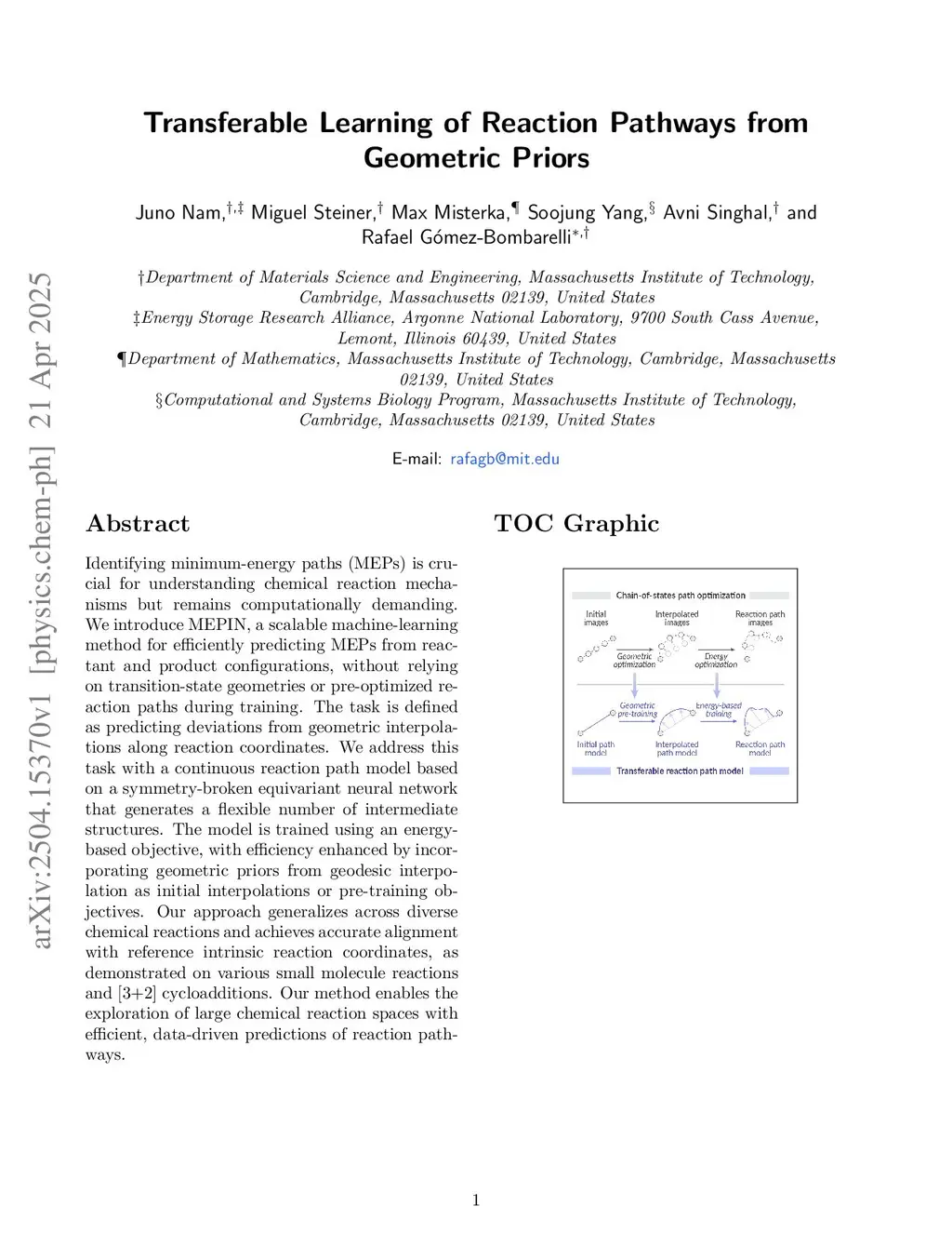Transferable Learning of Reaction Pathways from Geometric Priors