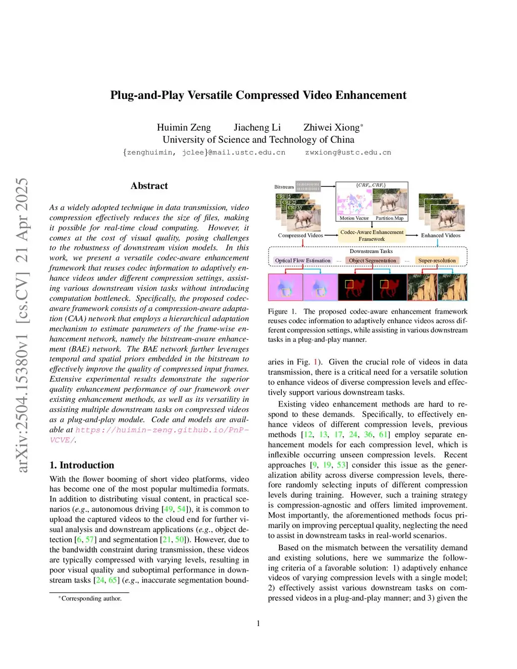 As a widely adopted technique in data transmission, video compression effectively reduces the size of files, making it possible for real-time cloud computing. However, it comes at the cost of visual quality, posing challenges to the robustness of downstream vision models. In this work, we present a versatile codec-aware enhancement framework that reuses codec information to adaptively enhance videos under different compression settings, assisting various downstream vision tasks without introducing computation bottleneck. Specifically, the proposed codec-aware framework consists of a compression-aware adaptation (CAA) network that employs a hierarchical adaptation mechanism to estimate parameters of the frame-wise enhancement network, namely the bitstream-aware enhancement (BAE) network. The BAE network further leverages temporal and spatial priors embedded in the bitstream to effectively improve the quality of compressed input frames. Extensive experimental results demonstrate the superior quality enhancement performance of our framework over existing enhancement methods, as well as its versatility in assisting multiple downstream tasks on compressed videos as a plug-and-play module. Code and models are available atthis https URL.