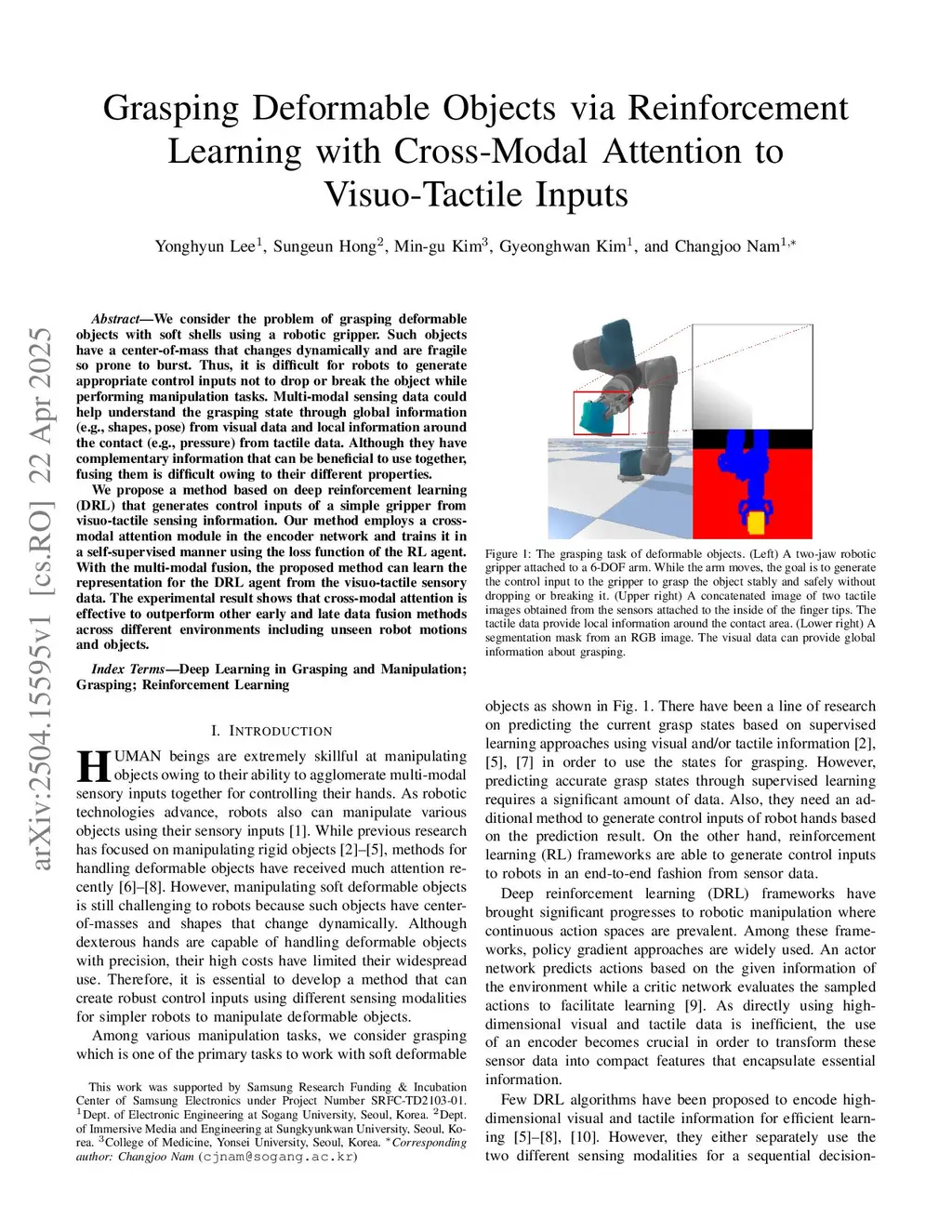 Grasping Deformable Objects via Reinforcement Learning with Cross-Modal Attention to Visuo-Tactile Inputs