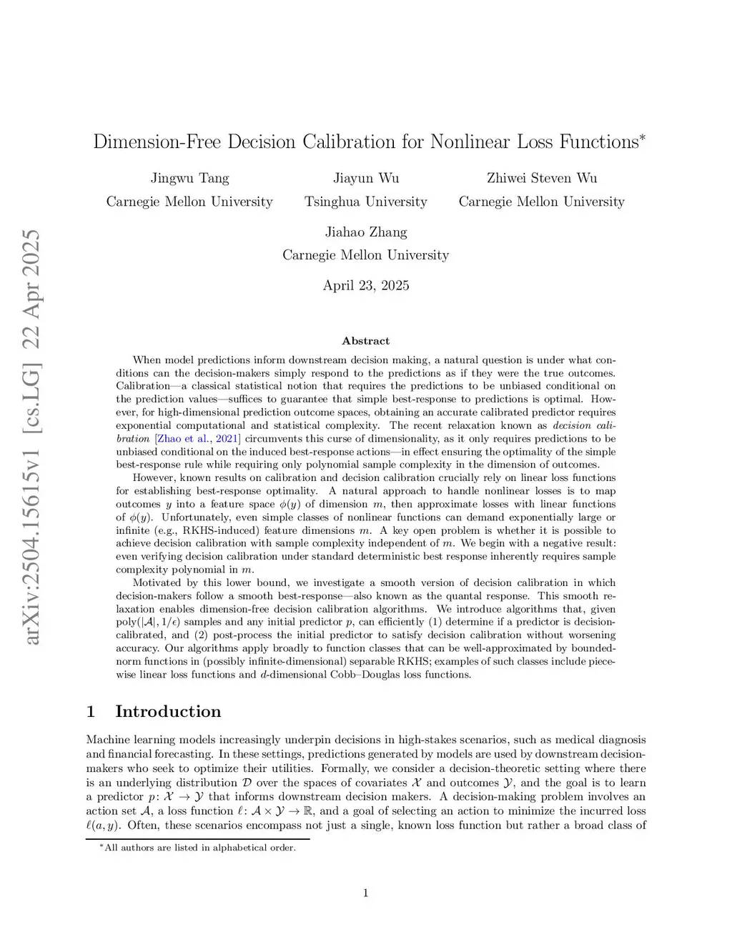 Dimension-Free Decision Calibration for Nonlinear Loss Functions