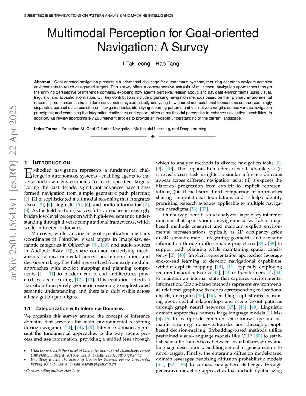 Multimodal Perception for Goal-oriented Navigation: A Survey