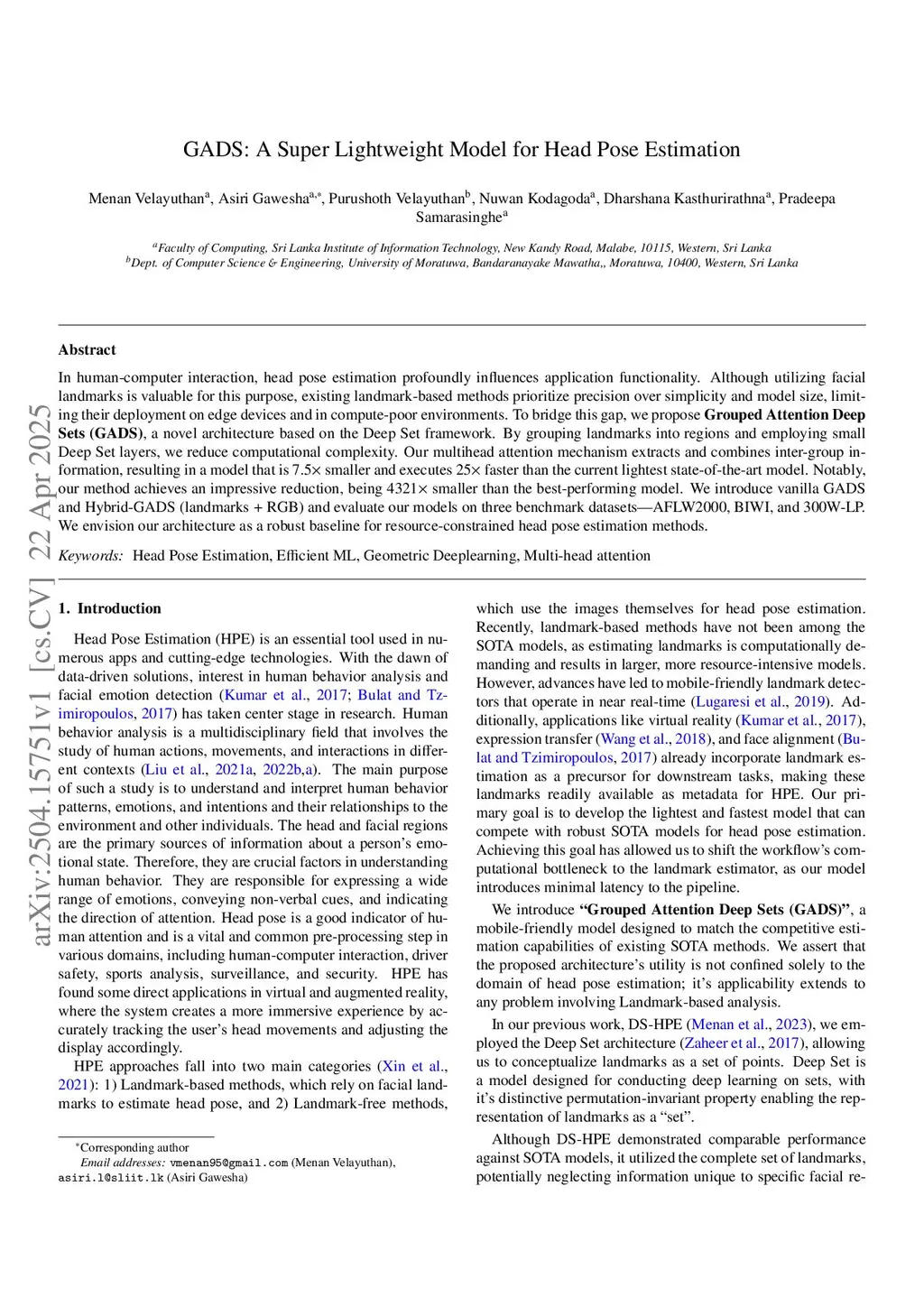 GADS: A Super Lightweight Model for Head Pose Estimation
