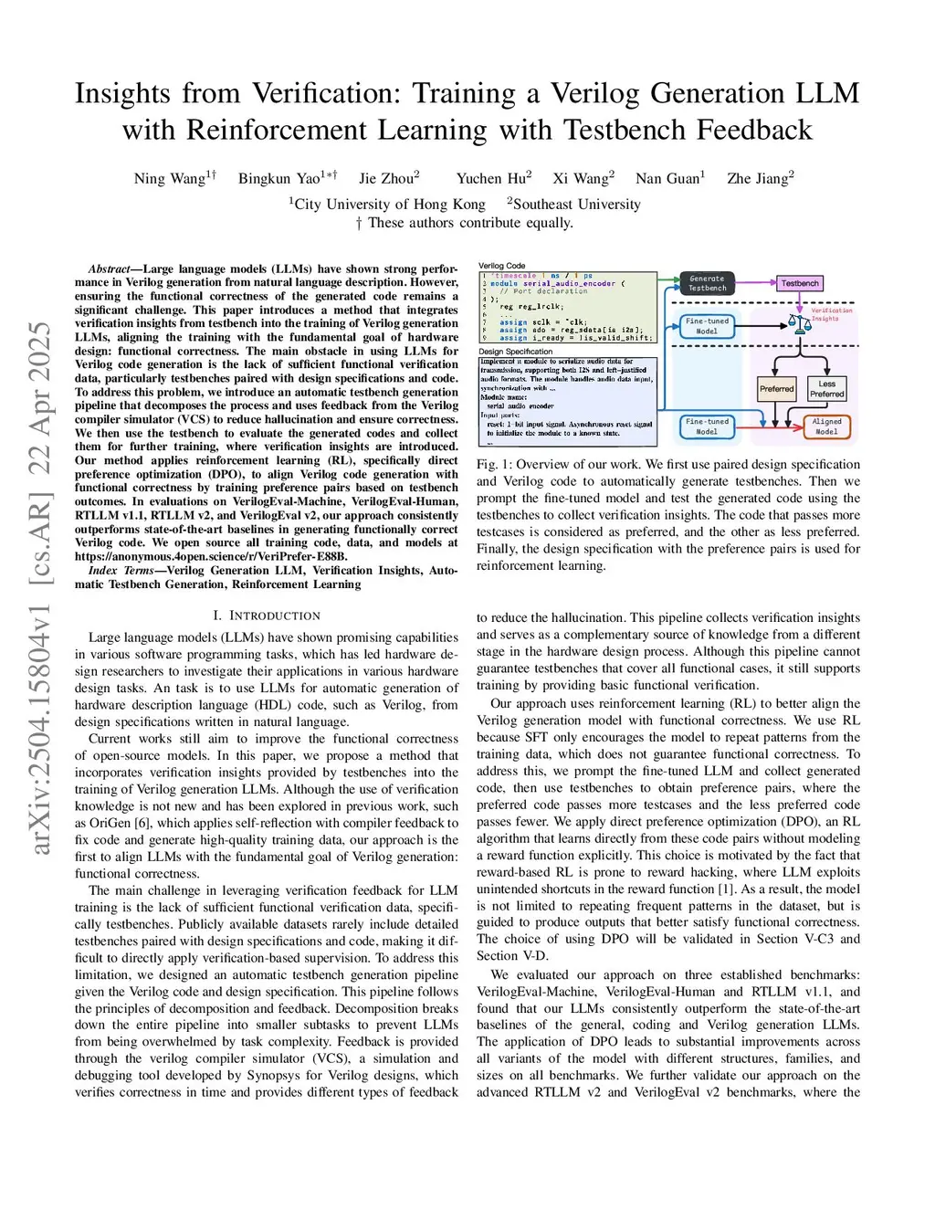 Insights from Verification: Training a Verilog Generation LLM with Reinforcement Learning with Testbench Feedback