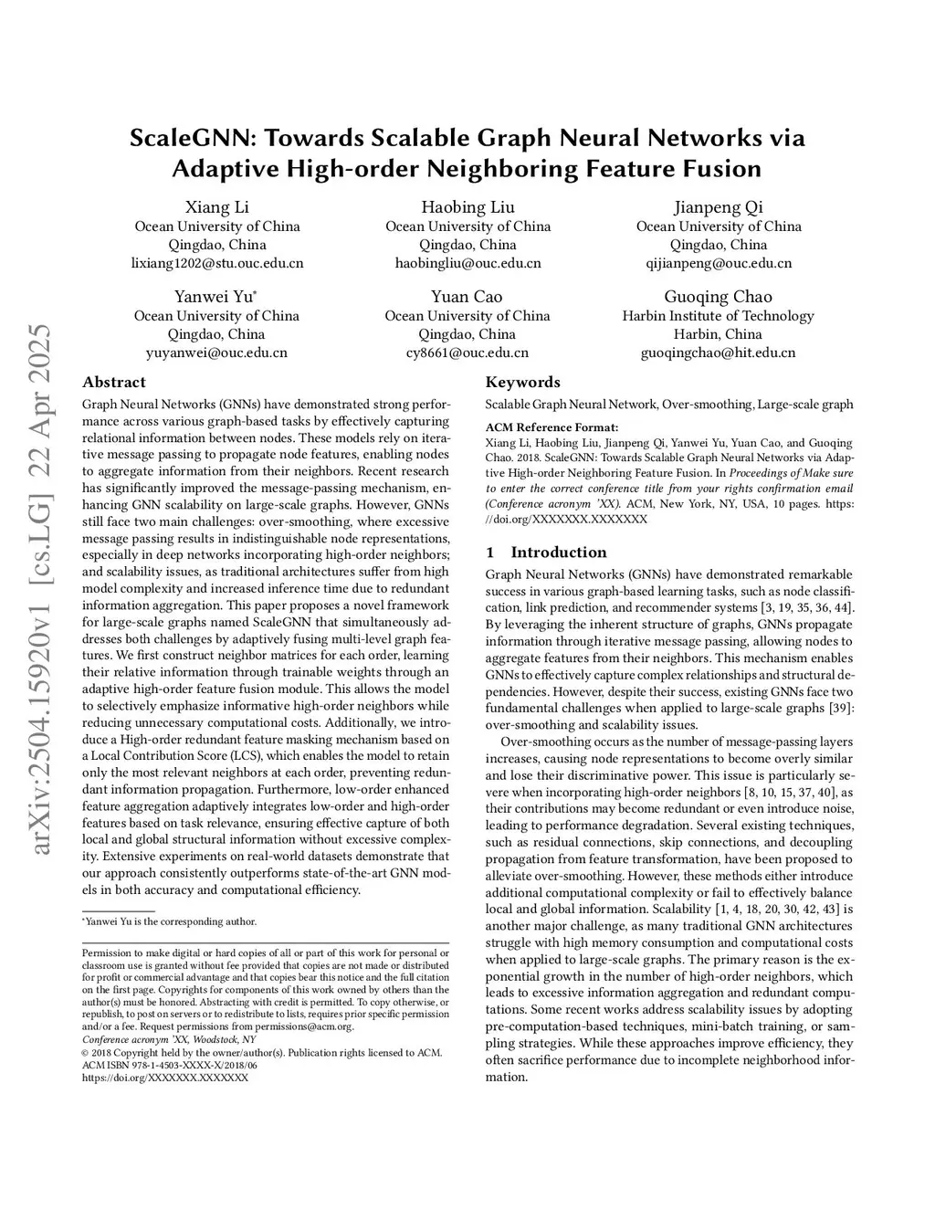 ScaleGNN: Towards Scalable Graph Neural Networks via Adaptive High-order Neighboring Feature Fusion