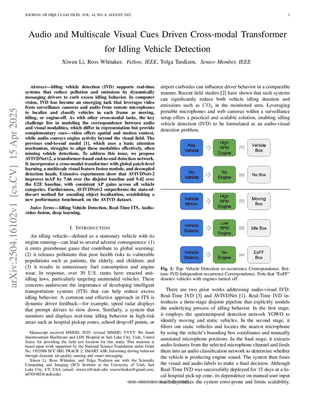 HAVT-IVD: Heterogeneity-Aware Cross-Modal Network for Audio-Visual Surveillance: Idling Vehicles Detection With Multichannel Audio and Multiscale Visual Cues