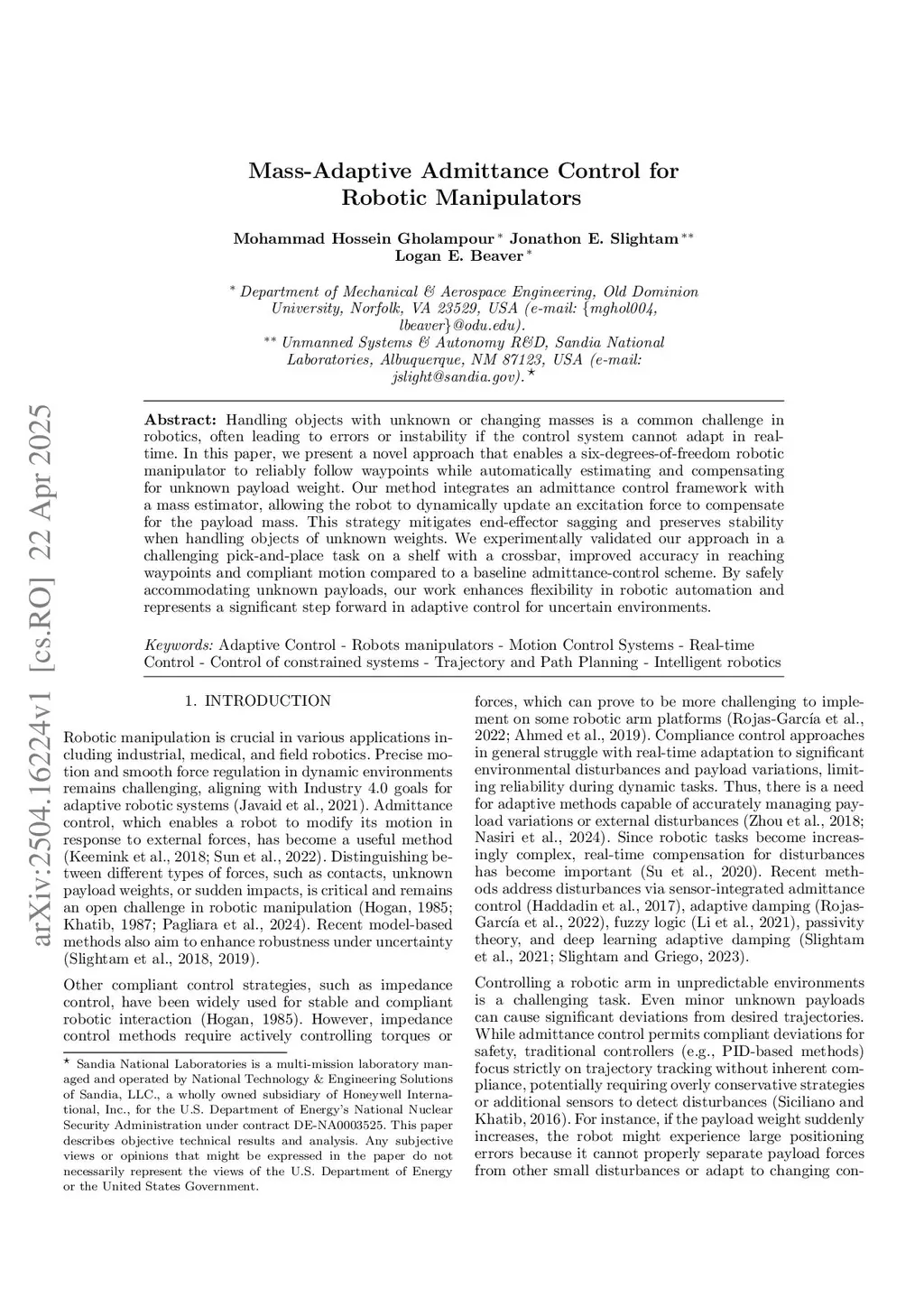 Mass-Adaptive Admittance Control for Robotic Manipulators