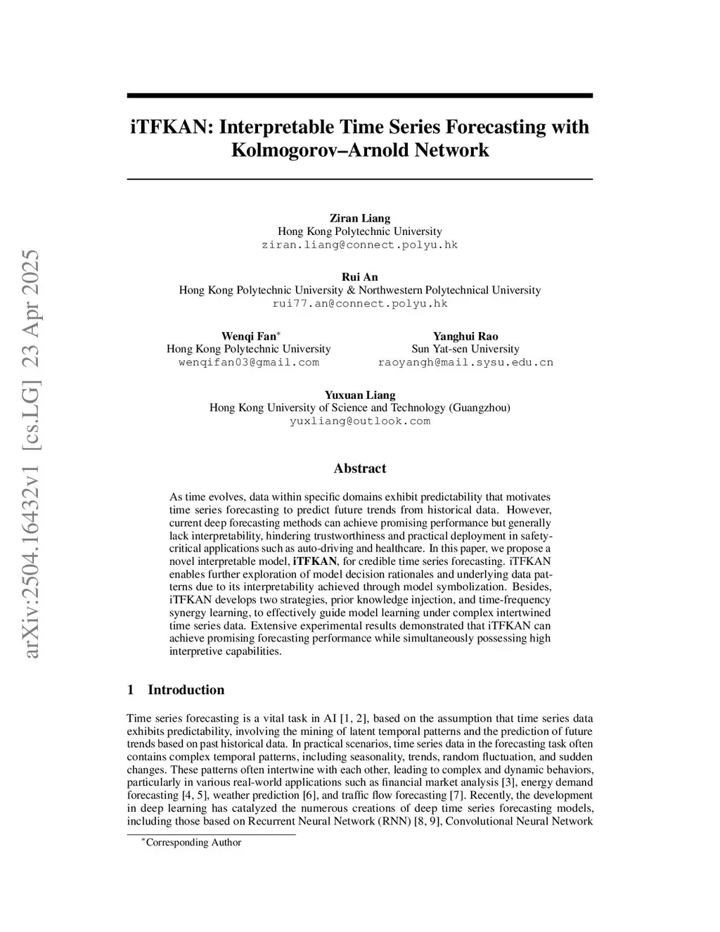 iTFKAN: Interpretable Time Series Forecasting with Kolmogorov-Arnold Network