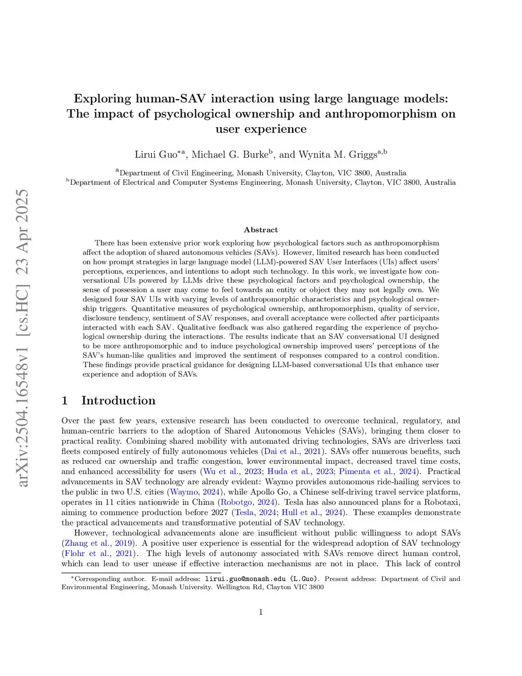 Exploring human-SAV interaction using LLMs: The impact of psychological factors on user experience