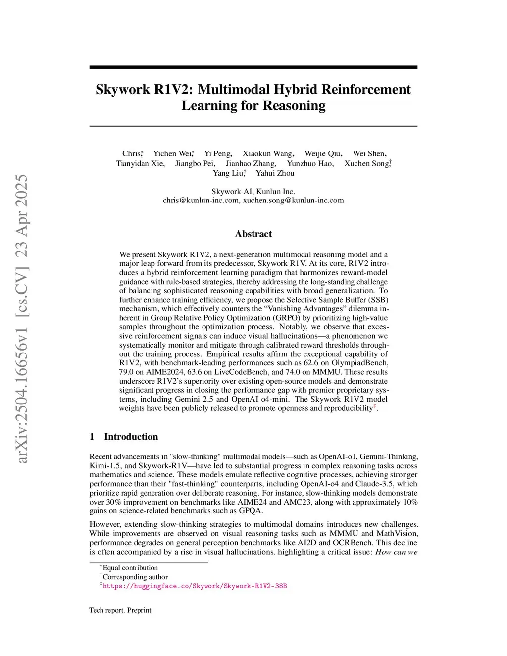 Skywork R1V2: Multimodal Hybrid Reinforcement Learning for Reasoning