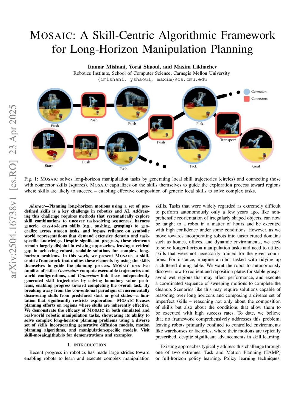 MOSAIC: A Skill-Centric Algorithmic Framework for Long-Horizon Manipulation Planning