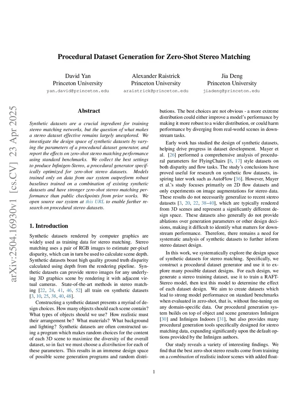 Synthetic datasets are a crucial ingredient for training stereo matching networks, but the question of what makes a stereo dataset effective remains underexplored. We investigate the design space of synthetic datasets by varying the parameters of a procedural dataset generator, and report the effects on zero-shot stereo matching performance using standard benchmarks. We validate our findings by collecting the best settings and creating a large-scale dataset. Training only on this dataset achieves better performance than training on a mixture of widely used datasets, and is competitive with training on the FoundationStereo dataset, with the additional benefit of open-source generation code and an accompanying parameter analysis to enable further research. We open-source our system atthis https URLto enable further research on procedural stereo datasets.