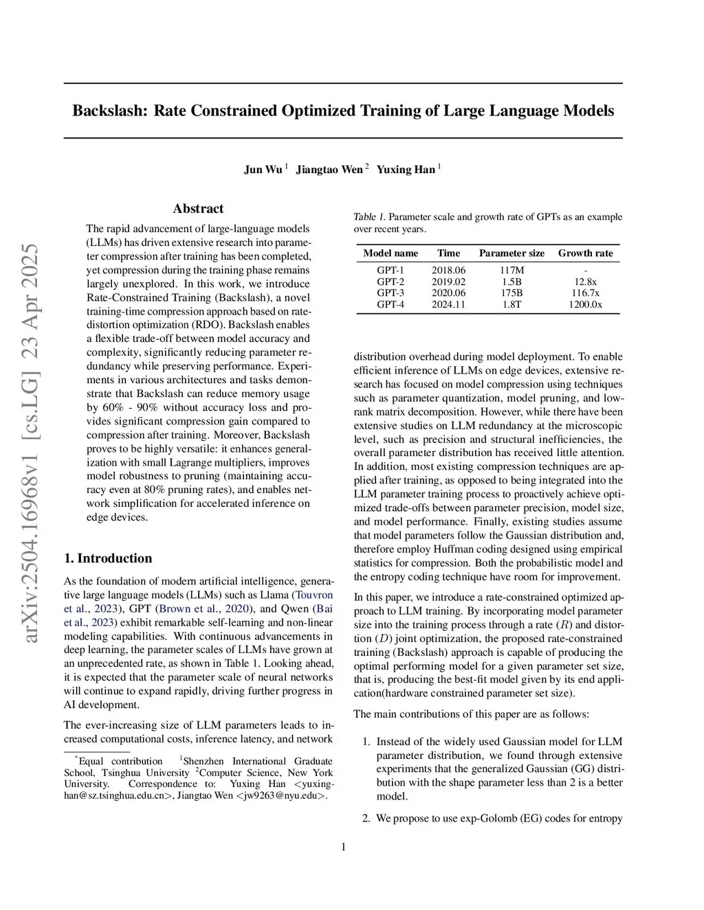 BackSlash: Rate Constrained Optimized Training of Large Language Models