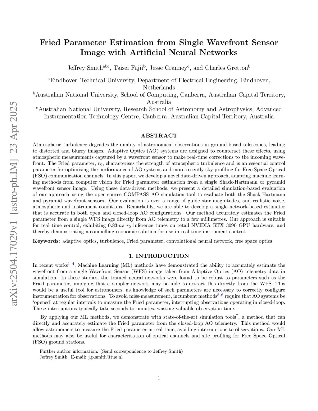 Atmospheric turbulence degrades the quality of astronomical observations in ground-based telescopes, leading to distorted and blurry images. Adaptive Optics (AO) systems are designed to counteract these effects, using atmospheric measurements captured by a wavefront sensor to make real-time corrections to the incoming wavefront. The Fried parameter, r0, characterises the strength of atmospheric turbulence and is an essential control parameter for optimising the performance of AO systems and more recently sky profiling for Free Space Optical (FSO) communication channels. In this paper, we develop a novel data-driven approach, adapting machine learning methods from computer vision for Fried parameter estimation from a single Shack-Hartmann or pyramid wavefront sensor image. Using these data-driven methods, we present a detailed simulation-based evaluation of our approach using the open-source COMPASS AO simulation tool to evaluate both the Shack-Hartmann and pyramid wavefront sensors. Our evaluation is over a range of guide star magnitudes, and realistic noise, atmospheric and instrument conditions. Remarkably, we are able to develop a single network-based estimator that is accurate in both open and closed-loop AO configurations. Our method accurately estimates the Fried parameter from a single WFS image directly from AO telemetry to a few millimetres. Our approach is suitable for real time control, exhibiting 0.83ms r0 inference times on retail NVIDIA RTX 3090 GPU hardware, and thereby demonstrating a compelling economic solution for use in real-time instrument control.