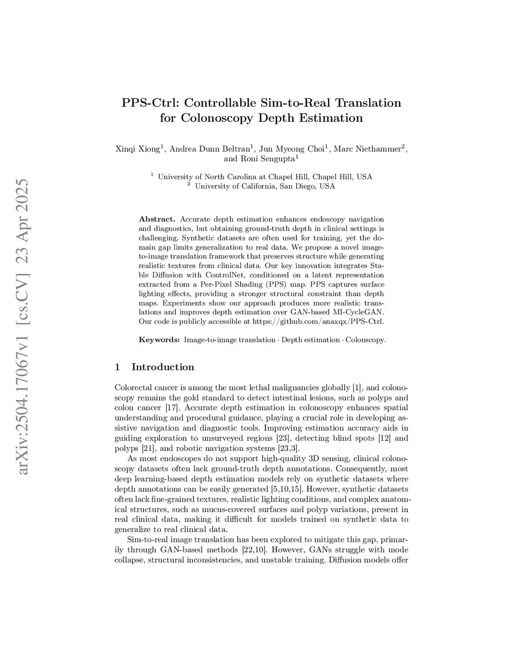 PPS-Ctrl: Controllable Sim-to-Real Translation for Colonoscopy Depth Estimation
