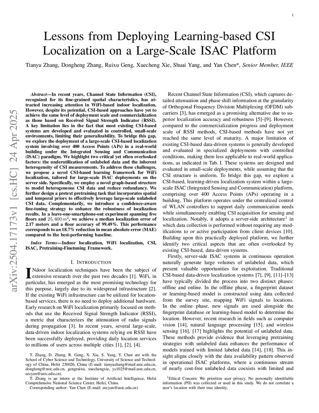In recent years, Channel State Information (CSI), recognized for its fine-grained spatial characteristics, has attracted increasing attention in WiFi-based indoor localization. However, despite its potential, CSI-based approaches have yet to achieve the same level of deployment scale and commercialization as those based on Received Signal Strength Indicator (RSSI). A key limitation lies in the fact that most existing CSI-based systems are developed and evaluated in controlled, small-scale environments, limiting their generalizability. To bridge this gap, we explore the deployment of a large-scale CSI-based localization system involving over 400 Access Points (APs) in a real-world building under the Integrated Sensing and Communication (ISAC) paradigm. We highlight two critical yet often overlooked factors: the underutilization of unlabeled data and the inherent heterogeneity of CSI measurements. To address these challenges, we propose a novel CSI-based learning framework for WiFi localization, tailored for large-scale ISAC deployments on the server side. Specifically, we employ a novel graph-based structure to model heterogeneous CSI data and reduce redundancy. We further design a pretext pretraining task that incorporates spatial and temporal priors to effectively leverage large-scale unlabeled CSI data. Complementarily, we introduce a confidence-aware fine-tuning strategy to enhance the robustness of localization results. In a leave-one-smartphone-out experiment spanning five floors and 25, 600 m2, we achieve a median localization error of 2.17 meters and a floor accuracy of 99.49%. This performance corresponds to an 18.7% reduction in mean absolute error (MAE) compared to the best-performing baseline.