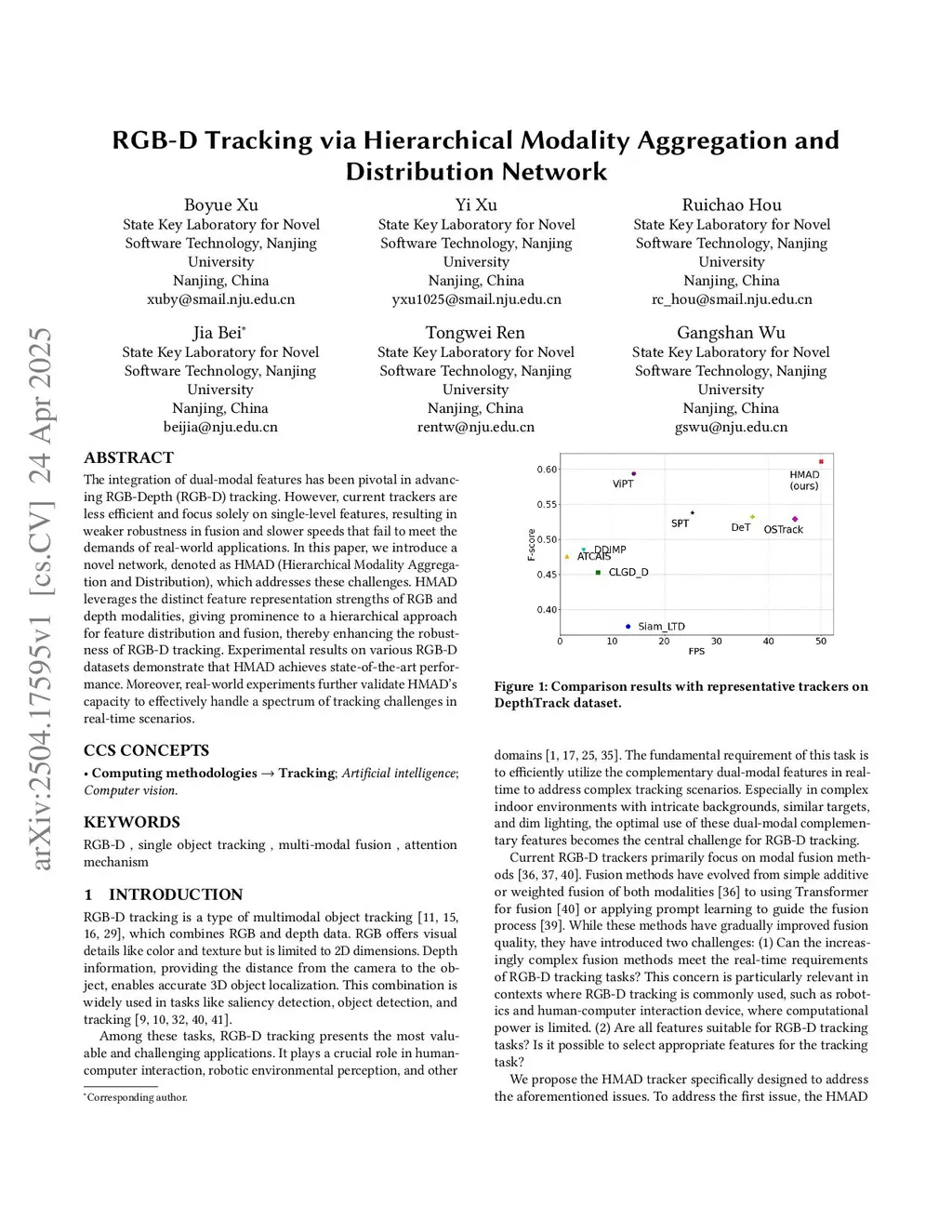 RGB-D Tracking via Hierarchical Modality Aggregation and Distribution Network