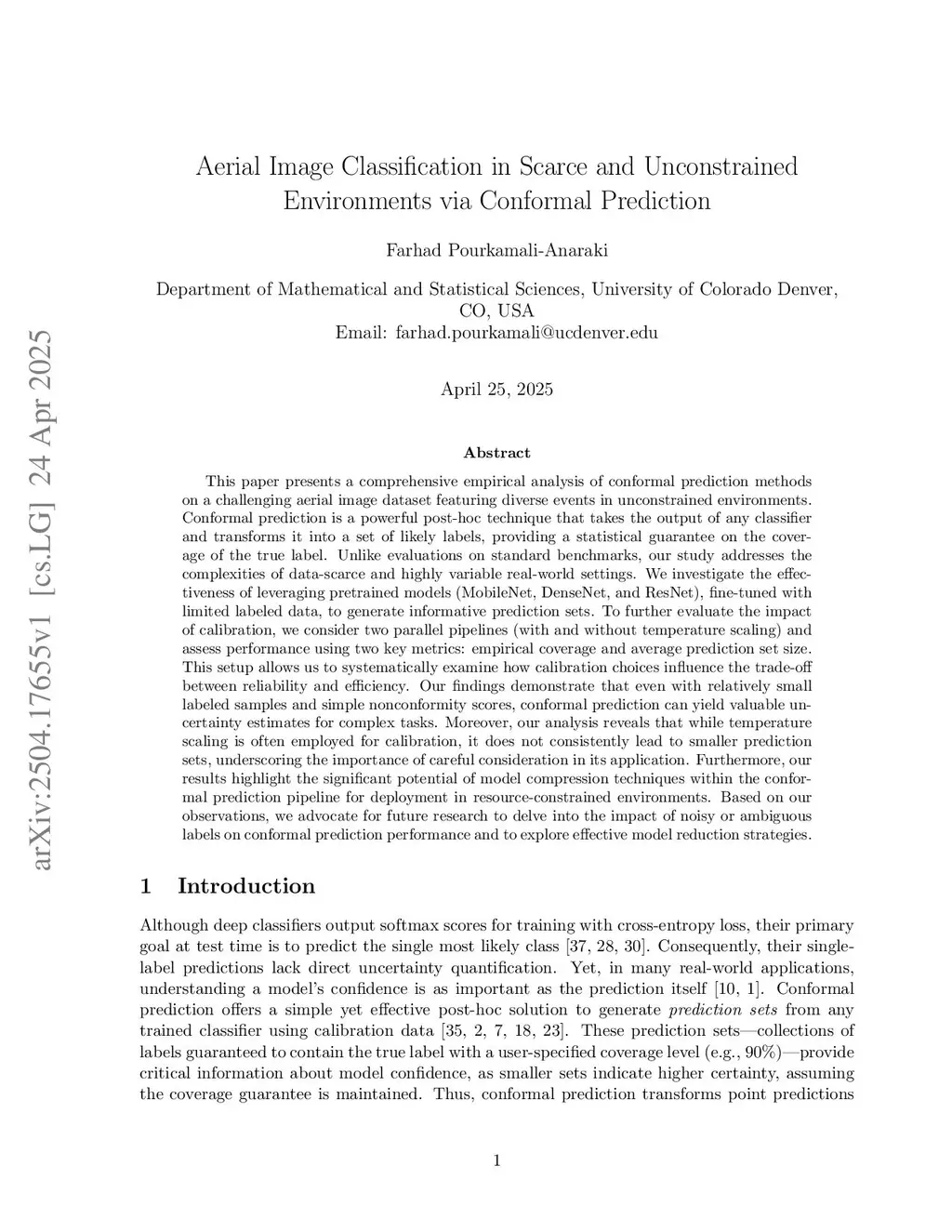 Aerial Image Classification in Scarce and Unconstrained Environments via Conformal Prediction
