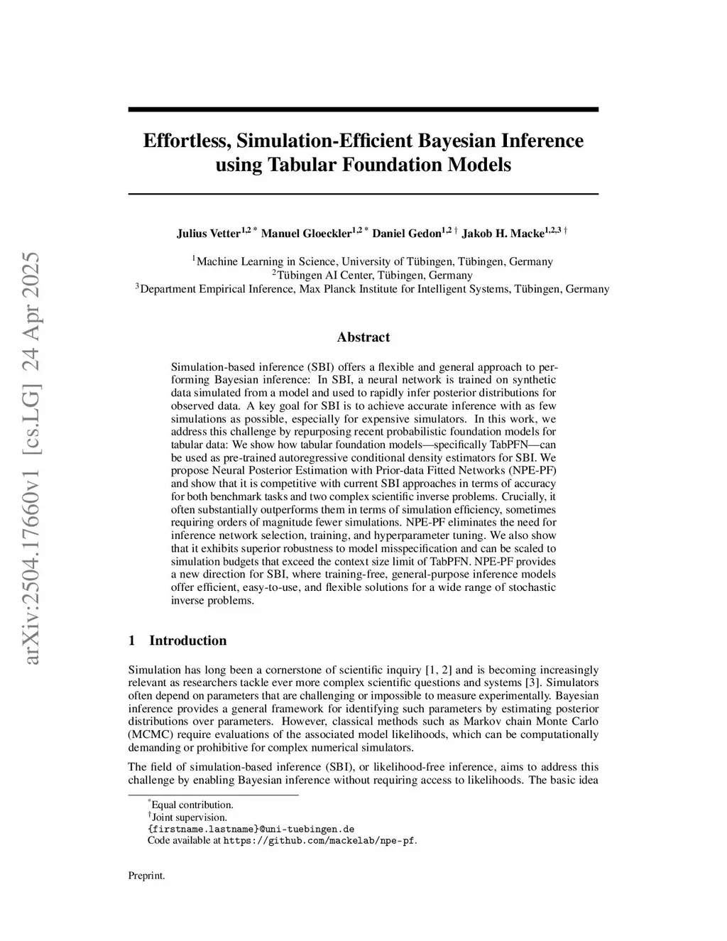 Effortless, Simulation-Efficient Bayesian Inference using Tabular Foundation Models