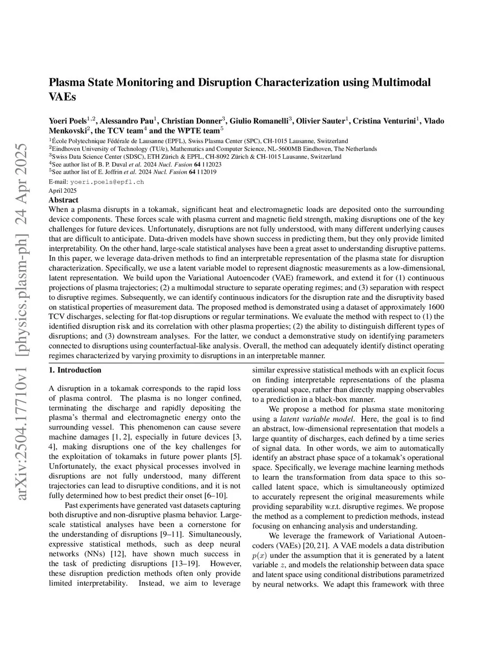 Plasma State Monitoring and Disruption Characterization using Multimodal VAEs