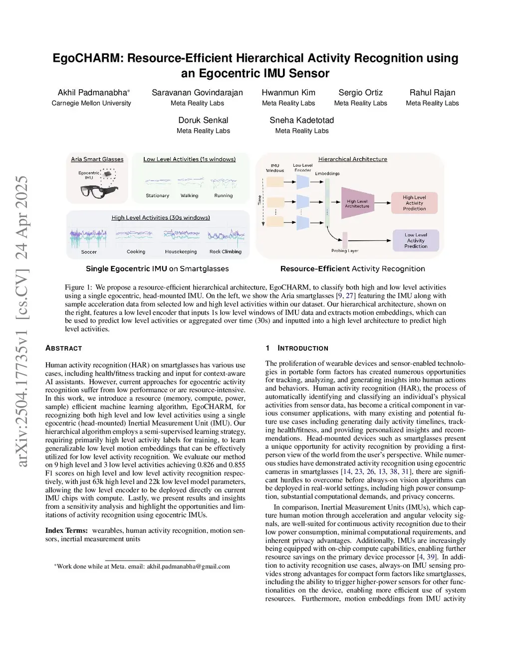 EgoCHARM: Resource-Efficient Hierarchical Activity Recognition using an Egocentric IMU Sensor