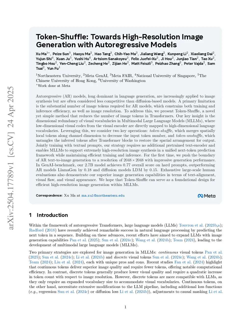 Token-Shuffle: Towards High-Resolution Image Generation with Autoregressive Models