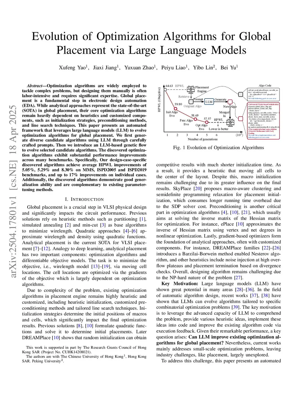 Evolution of Optimization Algorithms for Global Placement via Large Language Models