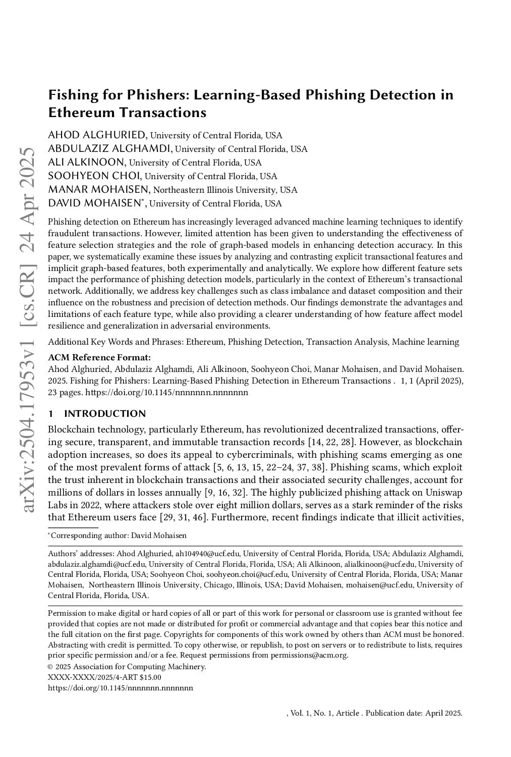 Fishing for Phishers: Learning-Based Phishing Detection in Ethereum Transactions