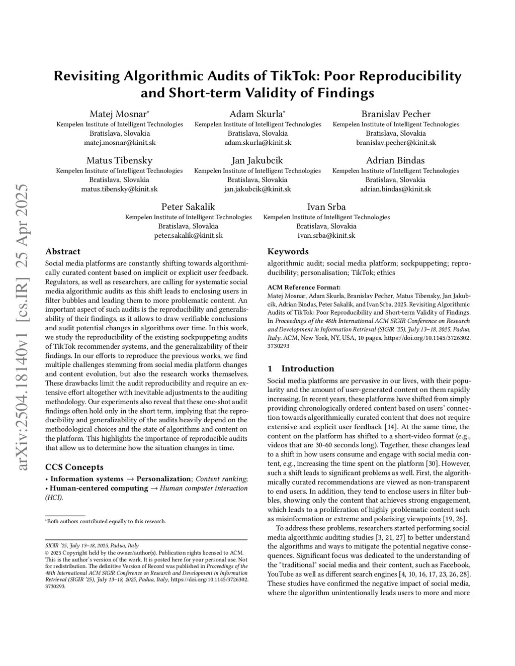 Social media platforms are constantly shifting towards algorithmically curated content based on implicit or explicit user feedback. Regulators, as well as researchers, are calling for systematic social media algorithmic audits as this shift leads to enclosing users in filter bubbles and leading them to more problematic content. An important aspect of such audits is the reproducibility and generalisability of their findings, as it allows to draw verifiable conclusions and audit potential changes in algorithms over time. In this work, we study the reproducibility of the existing sockpuppeting audits of TikTok recommender systems, and the generalizability of their findings. In our efforts to reproduce the previous works, we find multiple challenges stemming from social media platform changes and content evolution, but also the research works themselves. These drawbacks limit the audit reproducibility and require an extensive effort altogether with inevitable adjustments to the auditing methodology. Our experiments also reveal that these one-shot audit findings often hold only in the short term, implying that the reproducibility and generalizability of the audits heavily depend on the methodological choices and the state of algorithms and content on the platform. This highlights the importance of reproducible audits that allow us to determine how the situation changes in time.