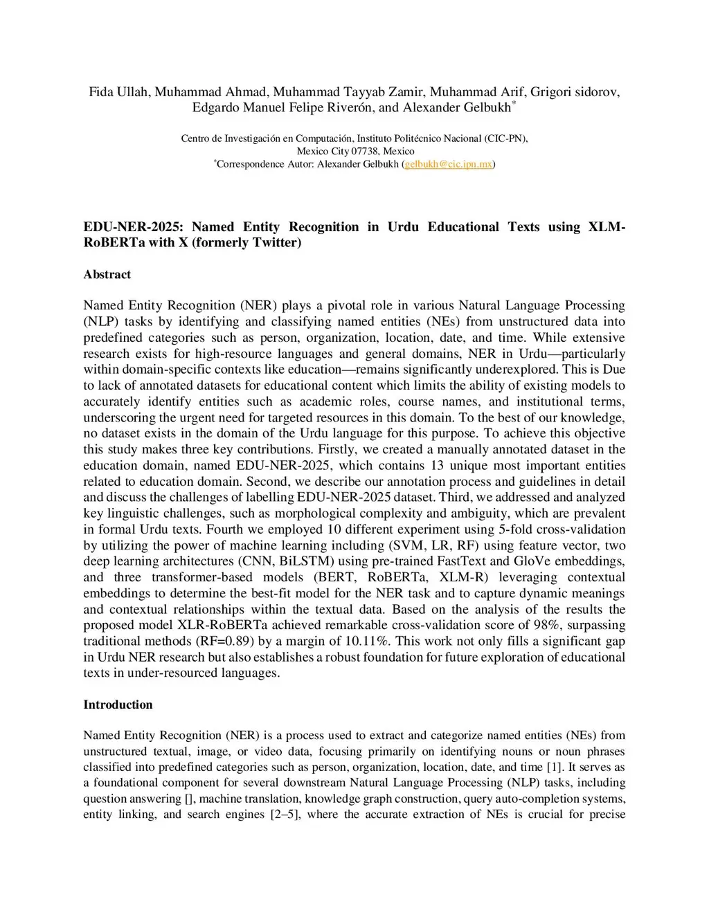 EDU-NER-2025: Named Entity Recognition in Urdu Educational Texts using XLM-RoBERTa with X (formerly Twitter)