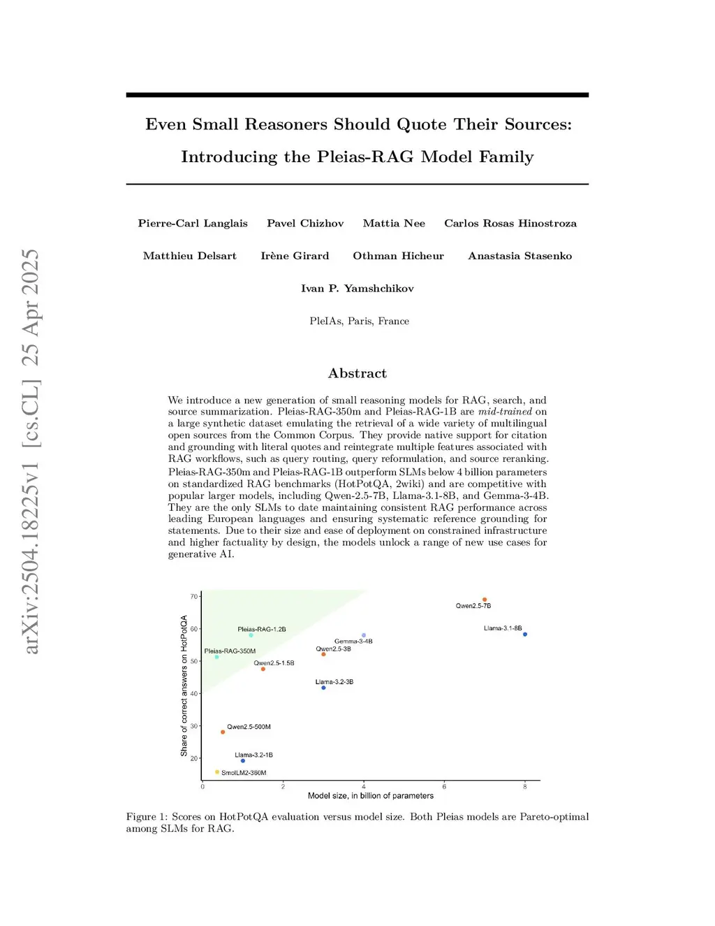 We introduce a new generation of small reasoning models for RAG, search, and source summarization. Pleias-RAG-350m and Pleias-RAG-1B are mid-trained on a large synthetic dataset emulating the retrieval of a wide variety of multilingual open sources from the Common Corpus. They provide native support for citation and grounding with literal quotes and reintegrate multiple features associated with RAG workflows, such as query routing, query reformulation, and source reranking. Pleias-RAG-350m and Pleias-RAG-1B outperform SLMs below 4 billion parameters on standardized RAG benchmarks (HotPotQA, 2wiki) and are competitive with popular larger models, including Qwen-2.5-7B, Llama-3.1-8B, and Gemma-3-4B. They are the only SLMs to date maintaining consistent RAG performance across leading European languages and ensuring systematic reference grounding for statements. Due to their size and ease of deployment on constrained infrastructure and higher factuality by design, the models unlock a range of new use cases for generative AI.