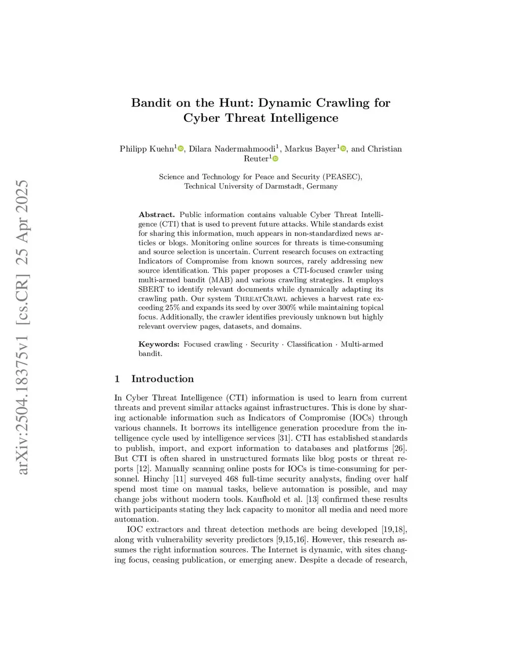 Bandit on the Hunt: Dynamic Crawling for Cyber Threat Intelligence