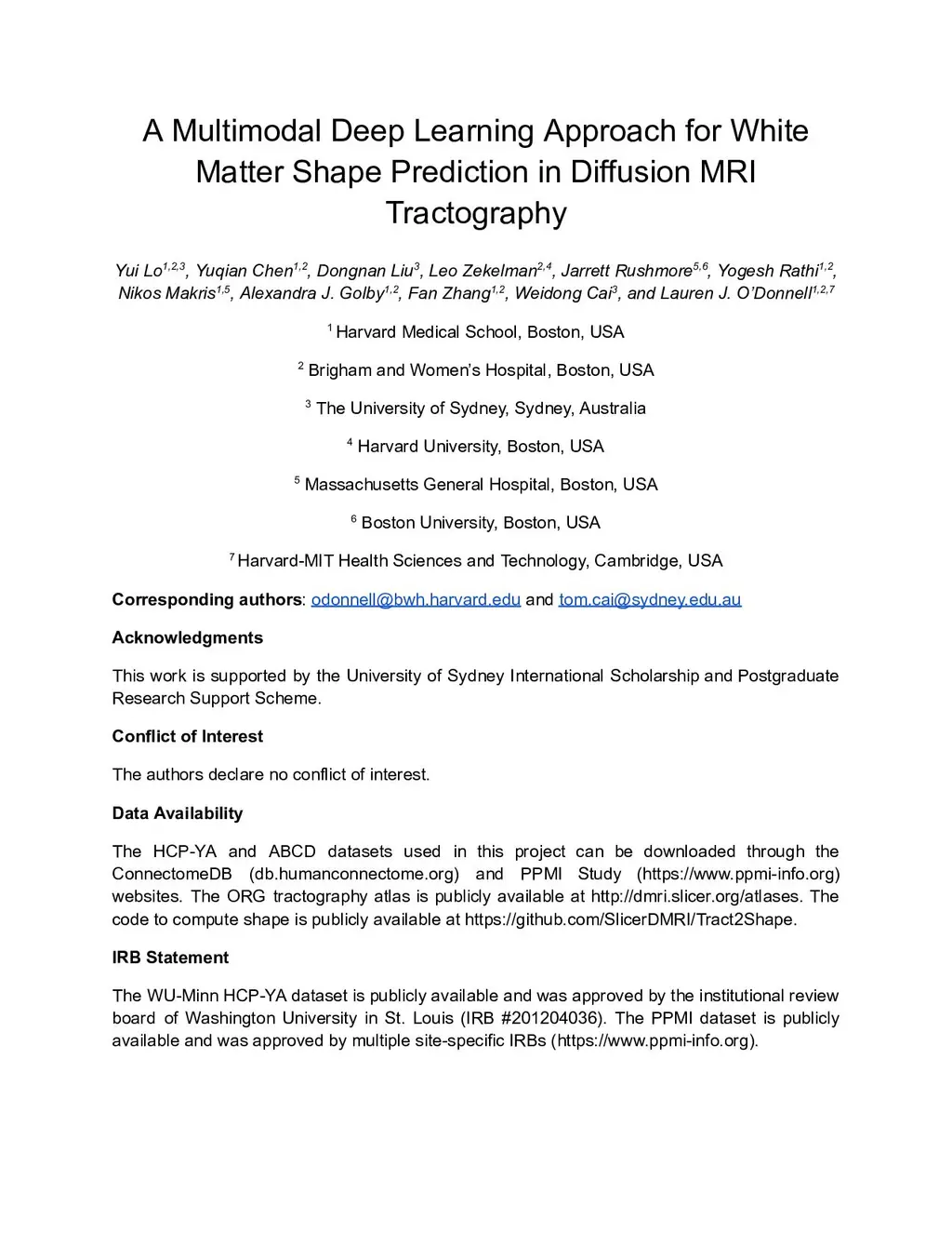 A Multimodal Deep Learning Approach for White Matter Shape Prediction in Diffusion MRI Tractography