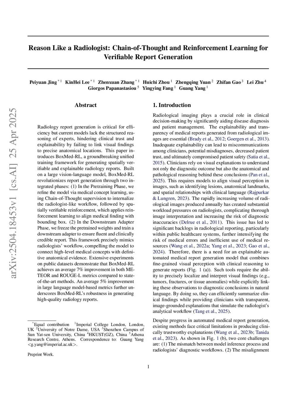 Reason Like a Radiologist: Chain-of-Thought and Reinforcement Learning for Verifiable Report Generation