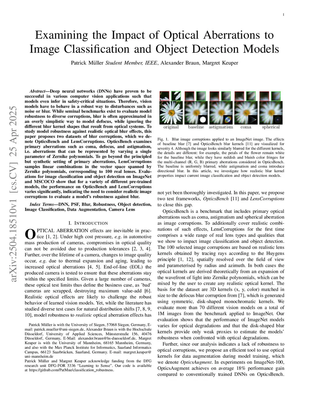 Examining the Impact of Optical Aberrations to Image Classification and Object Detection Models