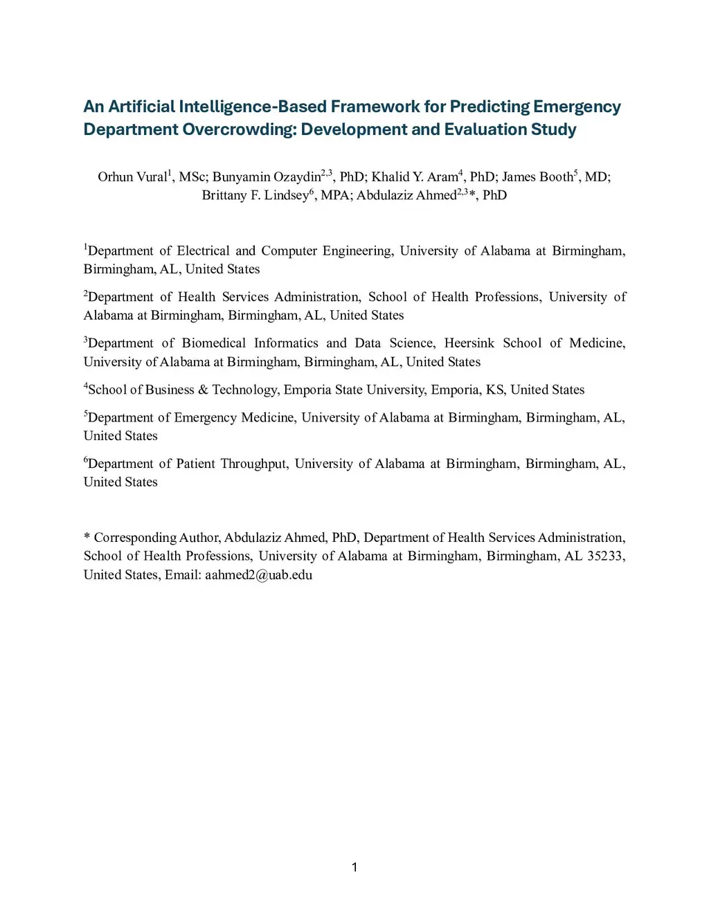 An Artificial Intelligence-Based Framework for Predicting Emergency Department Overcrowding: Development and Evaluation Study