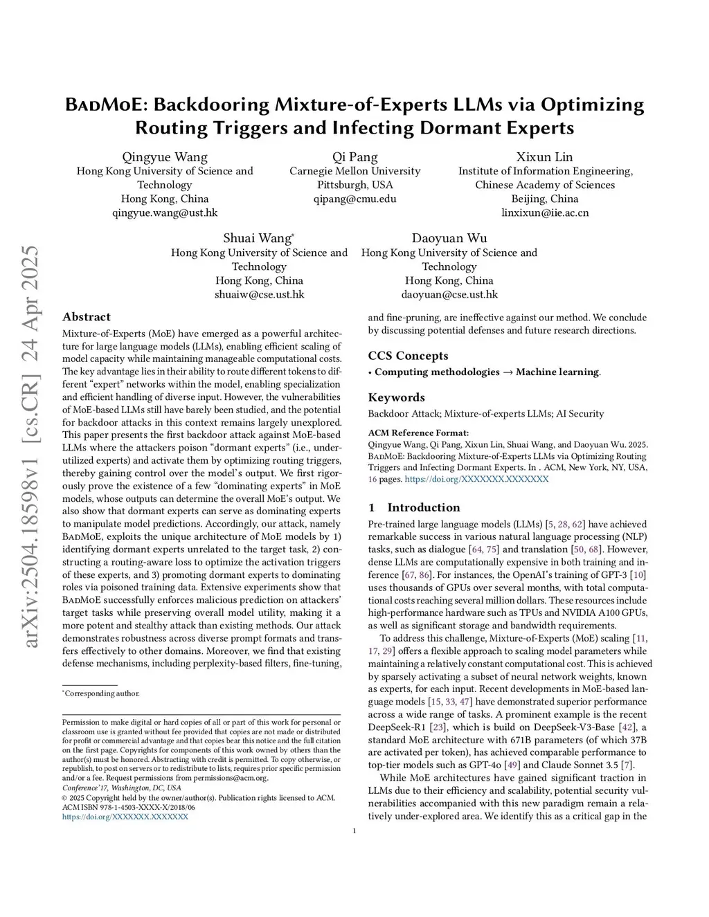 BadMoE: Backdooring Mixture-of-Experts LLMs via Optimizing Routing Triggers and Infecting Dormant Experts