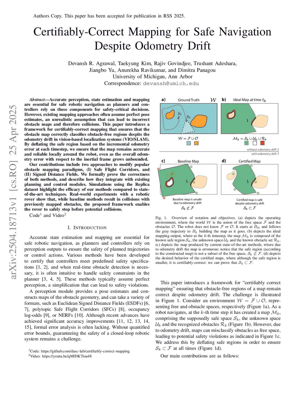 Certifiably-Correct Mapping for Safe Navigation Despite Odometry Drift