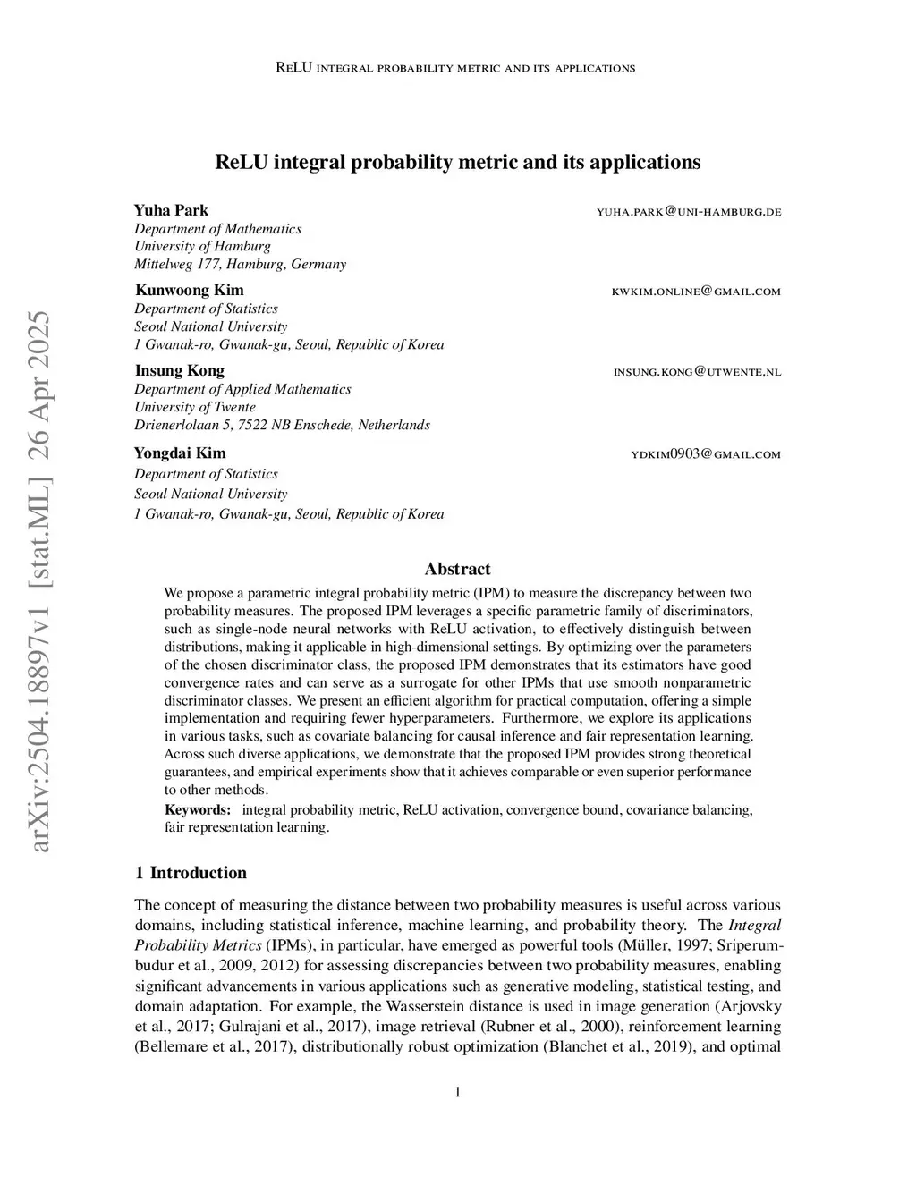ReLU integral probability metric and its applications