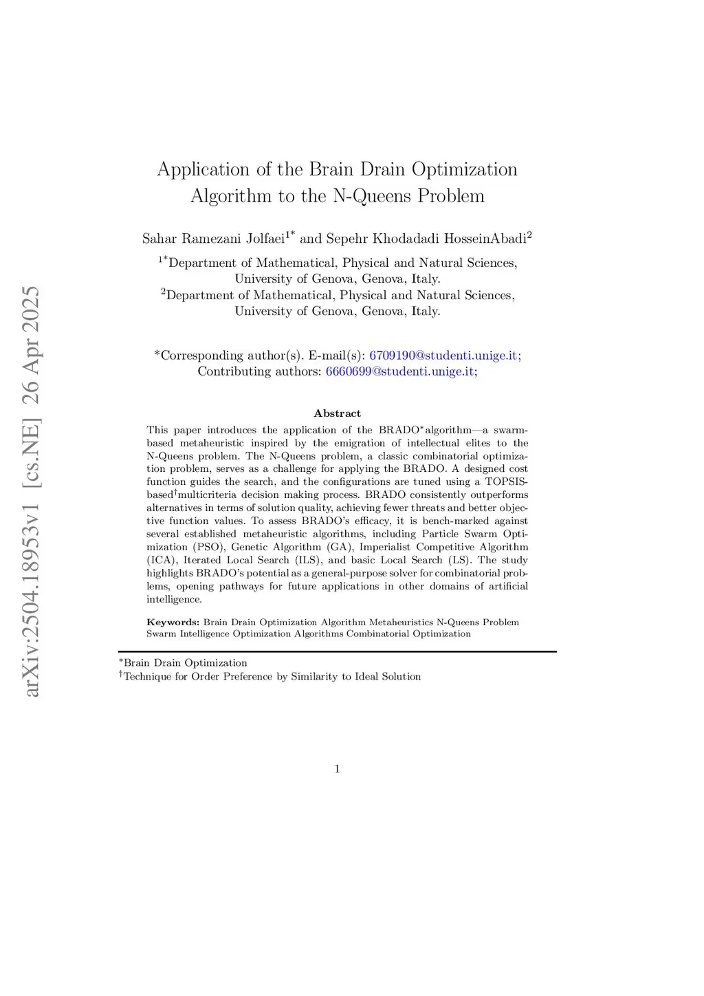 Application of the Brain Drain Optimization Algorithm to the N-Queens Problem