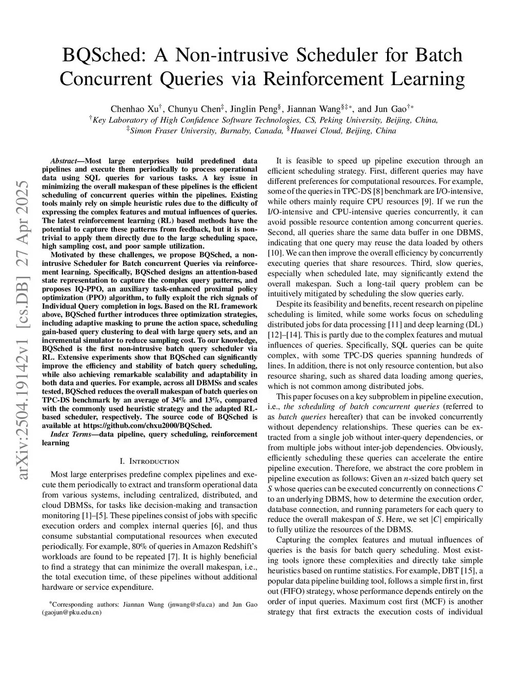 BQSched: A Non-intrusive Scheduler for Batch Concurrent Queries via Reinforcement Learning
