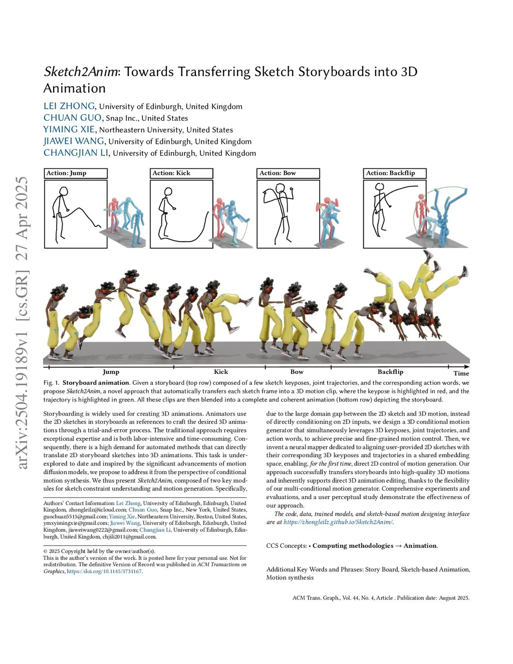 Sketch2Anim: Towards Transferring Sketch Storyboards into 3D Animation