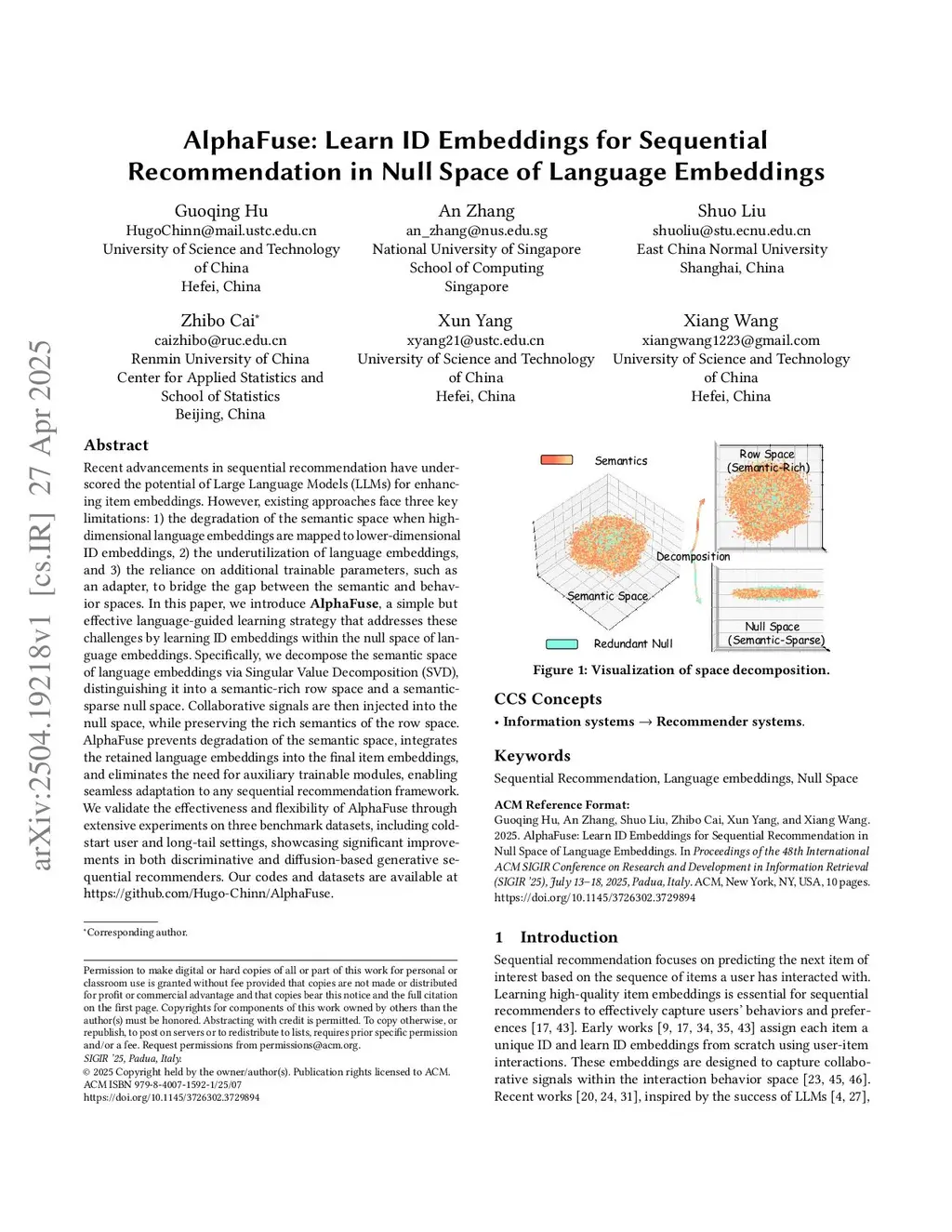 AlphaFuse: Learn ID Embeddings for Sequential Recommendation in Null Space of Language Embeddings
