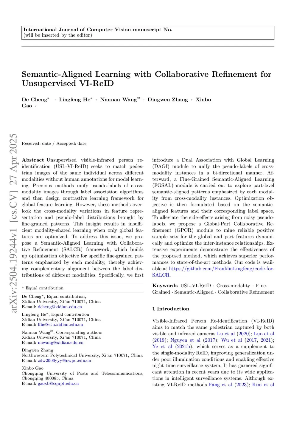 Semantic-Aligned Learning with Collaborative Refinement for Unsupervised VI-ReID