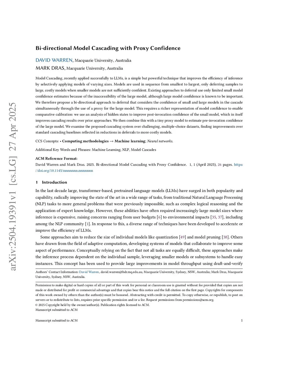 Bi-directional Model Cascading with Proxy Confidence