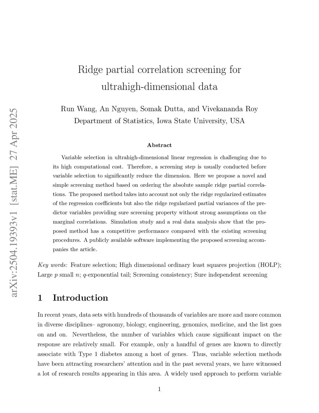 Ridge partial correlation screening for ultrahigh-dimensional data