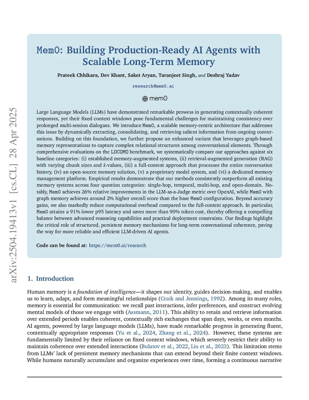 Mem0: Building Production-Ready AI Agents with Scalable Long-Term Memory
