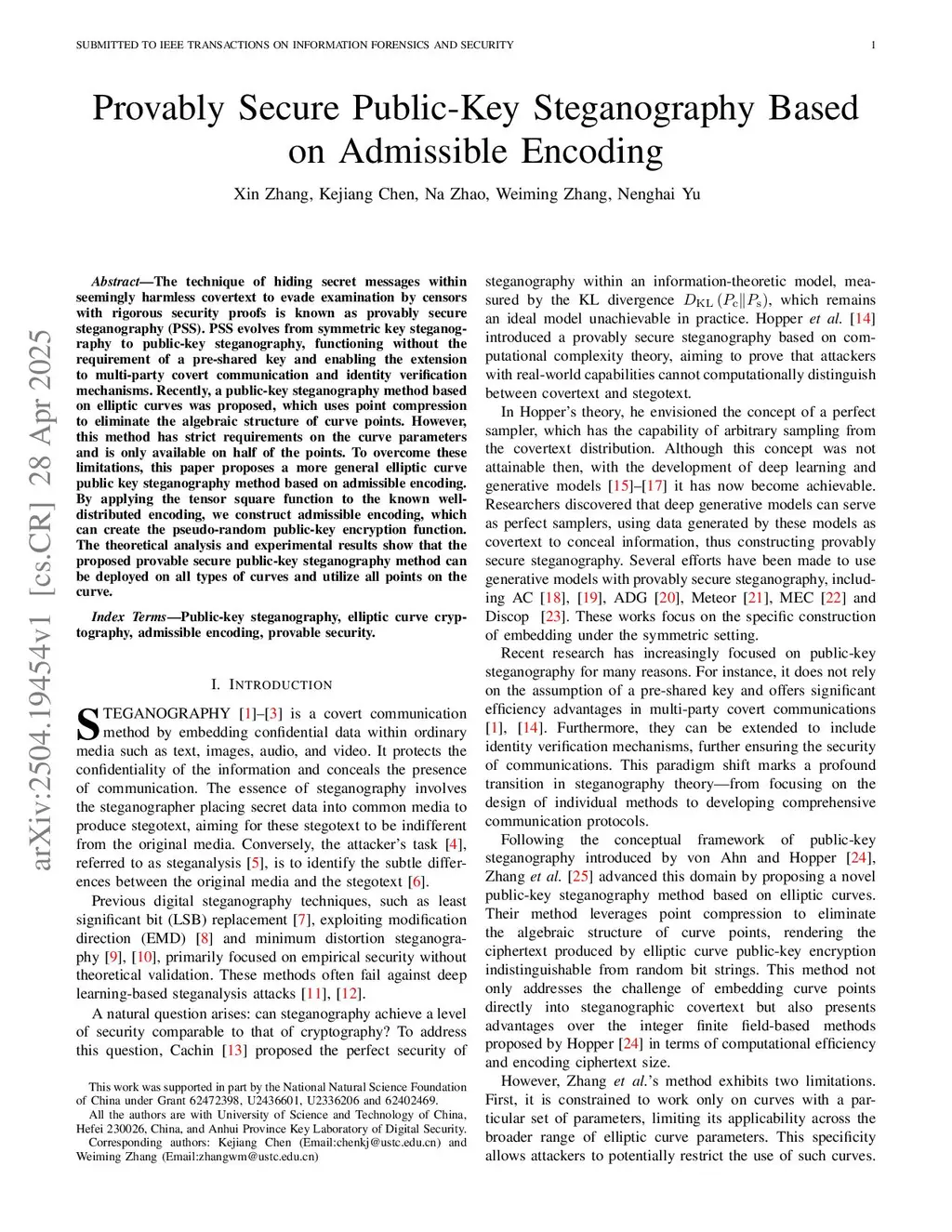 Provably Secure Public-Key Steganography Based on Admissible Encoding