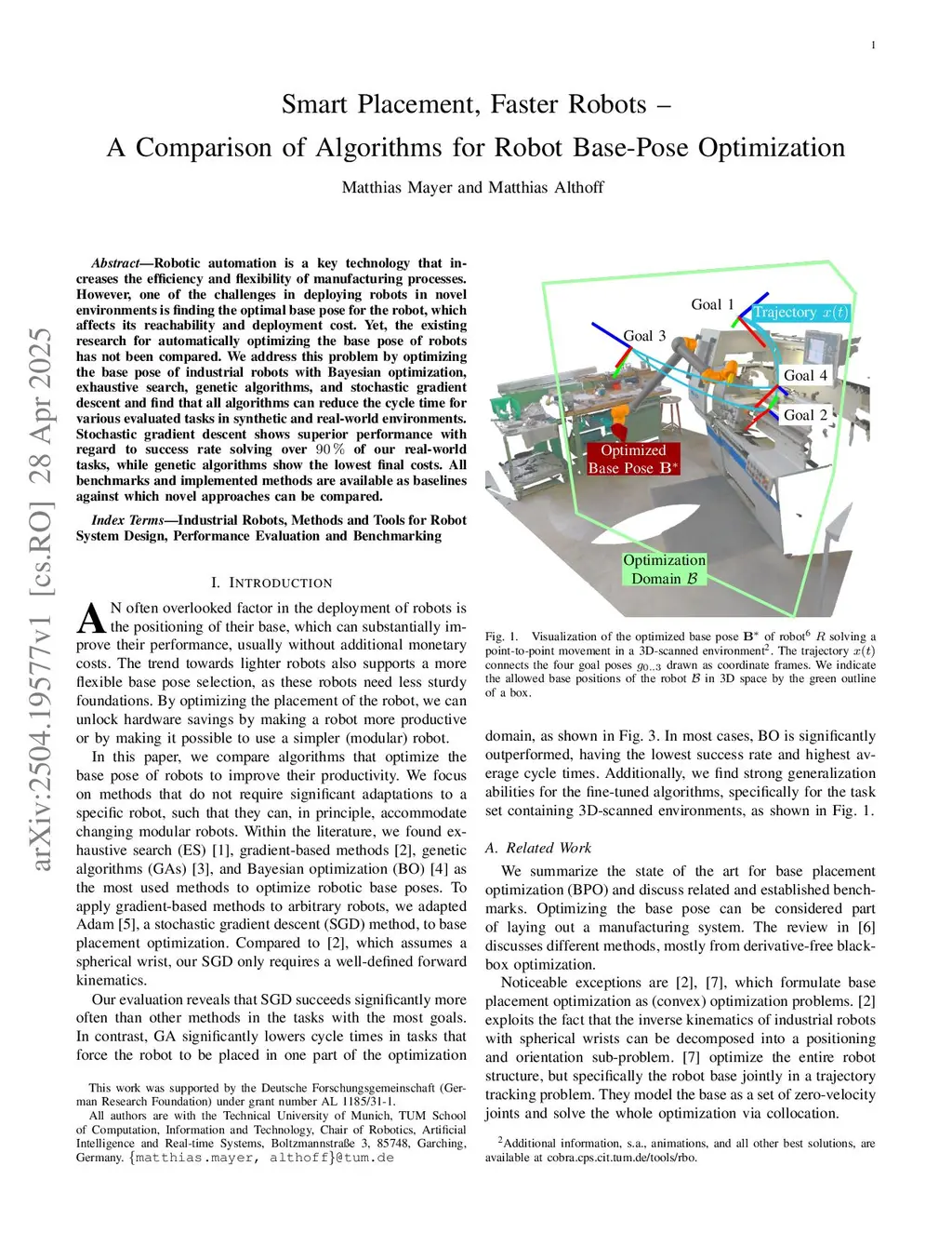 Smart placement, faster robots-a comparison of algorithms for robot base-pose optimization